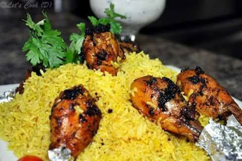 – يرفع الوعاء عن النار، يسكب الارز البسمتى الاصفر في طبق ويقدم ساخناً