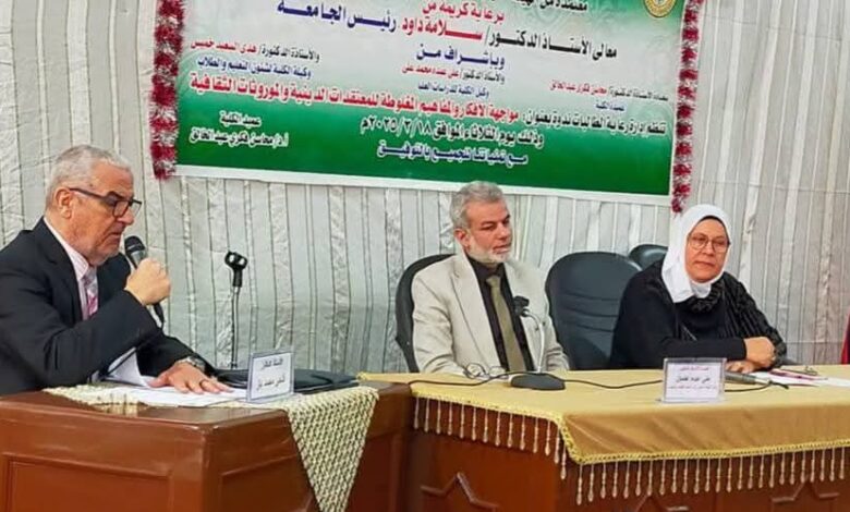 برعاية كريمة من فضيلة الدكتور سلامة داود، رئيس جامعة الأزهر، وفضيلة الدكتور رمضان عبد الله الصاوي، نائب رئيس الجامعة للوجه البحري، وتحت إشراف الدكتورة محاسن فكري عبد الخالق، عميدة كلية الدراسات الإسلامية بالمنصورة؛ نظّمت إدارة رعاية الطالبات بالكلية ندوة علمية بعنوان: «مواجهة الأفكار والمفاهيم المغلوطة للمعتقدات الدينية والموروثات الثقافية» وذلك بحضور لفيف من أعضاء هيئة التدريس، ومسؤولي رعاية الطلاب بالوجه البحري.