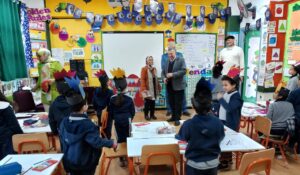 وخلال تفقده تابع وكيل الوزارة انتظام التلاميذ داخل الفصول وشاركهم احتفالهم بعيد الام وهناهم بقرب حلول عيد الفطر المبارك