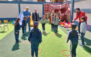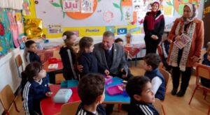 كما شهد حصة التربية الرياضية وتفاعل مع التلاميذ داخل فناء المدرسة