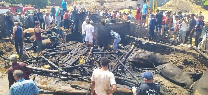 نفوق 9 رؤوس ماشية في حريق اندلع بحظيرة بقرية لقانة بالبحيرة