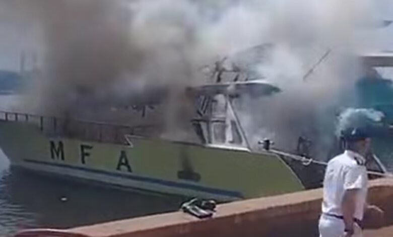 اندلاع حريق هائل في مركب رحلات على كورنيش رشيد