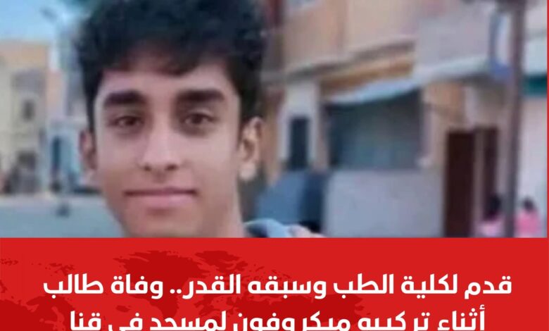 قدم لكلية الطب وسبقه القدر.. وفاة طالب صعقا بالكهرباء أثناء تركيب ميكروفون بمسجد في قنا