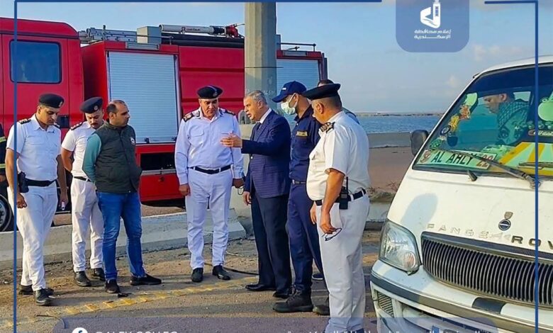 محافظ الإسكندرية يتفقد موقع حادث اشتعال سيارة بمحور المشير أبو ذكرى
