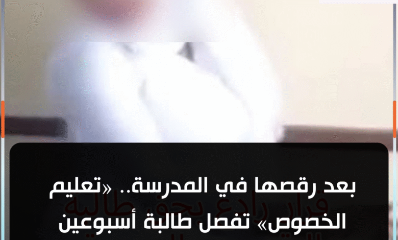 قررت إدارة الخصوص التعليمية، فصل طالبة لمدة أسبوعين، وذلك على خلفية قيامها بسلوك مخالف داخل المدرسة، تمثل في الرقص، وذلك تطبيقًا للائحة الانضباط المدرسي رقم 150 لسنة 2024.
